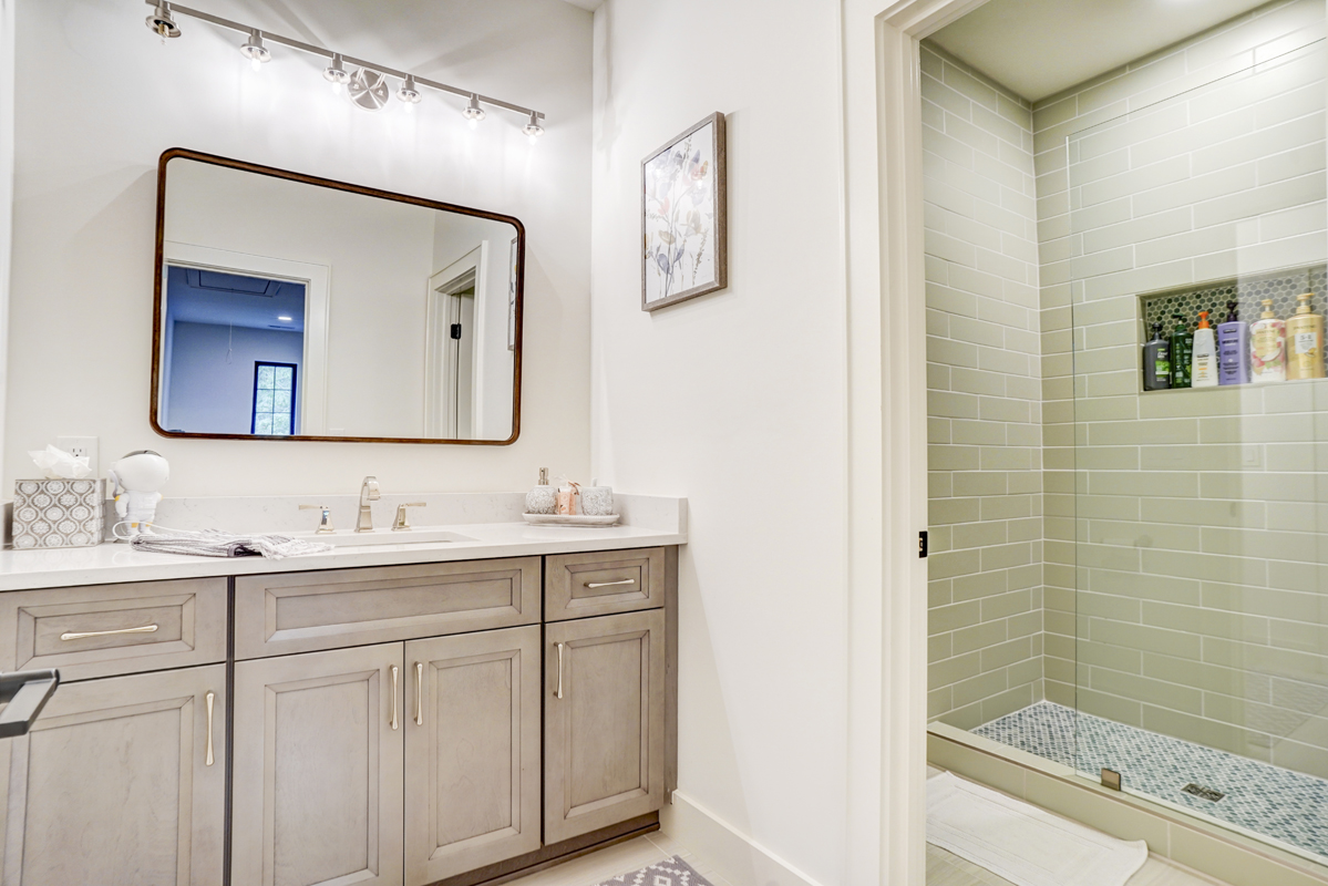 As Custom Home Builder Mooresville NC was also focused tremendously on our bathroom suites to provide our clients with a tranquil space to relax while prepping for the day or unwinding at the end of a long day.