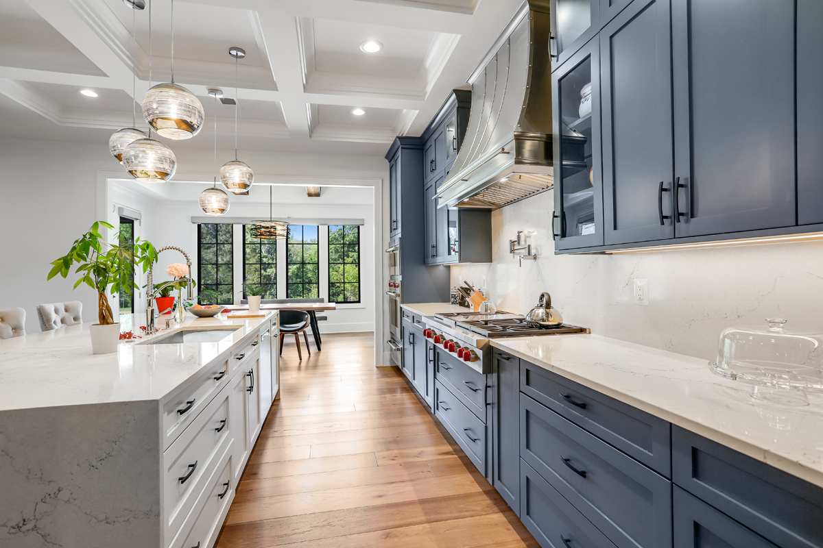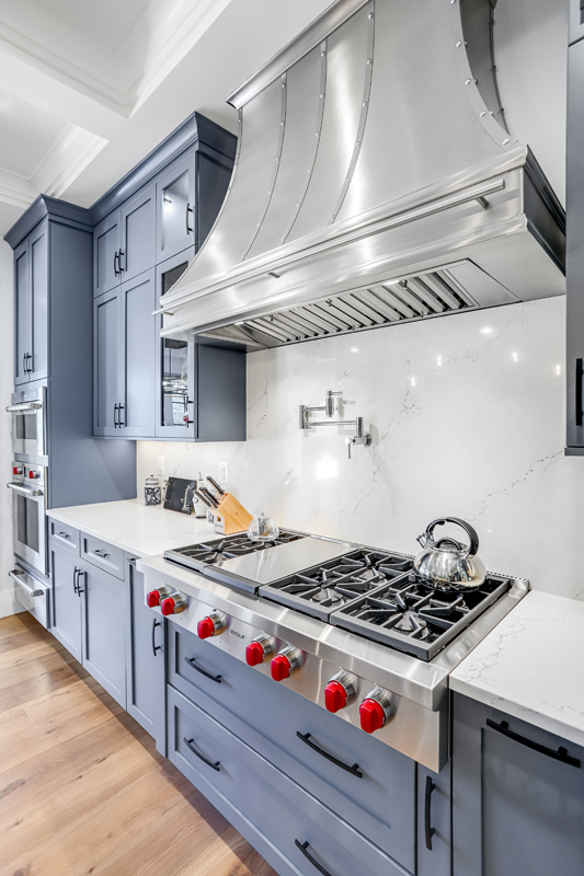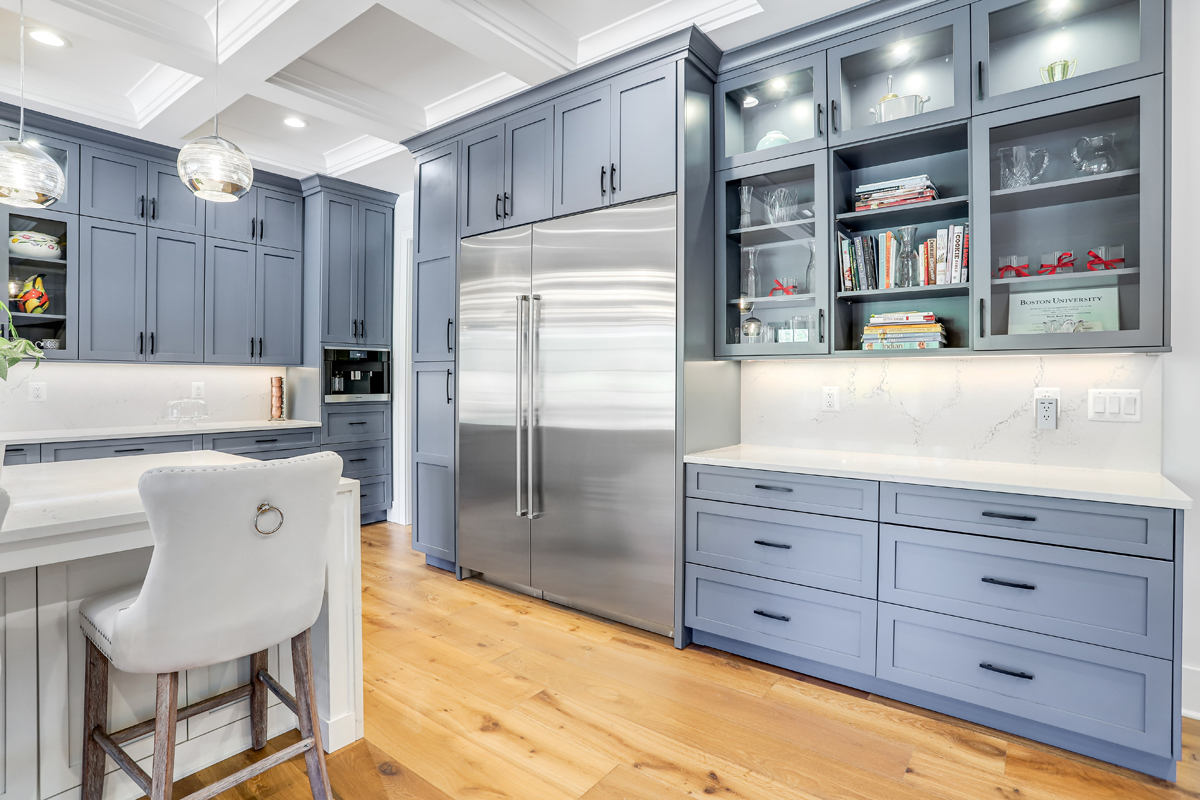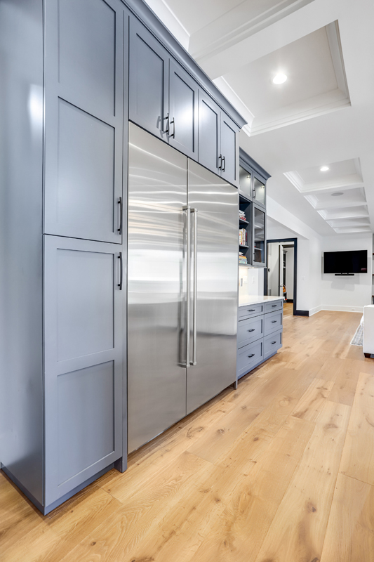 Our kitchens feature state of the art appliances Including Subzero and Wolf, Thermador and Miele just to name a few. We work for your kitchen designers and utilize a range of fully custom cabinets and other stock options to meet the needs of our clients or kitchen designers spend approximately 20 to 30 hours designing every aspect of your Cabinetry. They work alongside the project designer to bring your kitchen to life. We have on occasion even built custom furniture and tables for clients that needed that extra touch. Spending time in our gallery you will be able to see the attention to detail provided in every aspect of the home and hopefully gain ideas to bring your project to life. One of our favorite projects included fully custom cabinets with Walnut and lays butcher block countertops Project also included Walnut sink and lays that can double as a buffet area and custom Walnut serving trays that are hidden in the cabinets when not in use